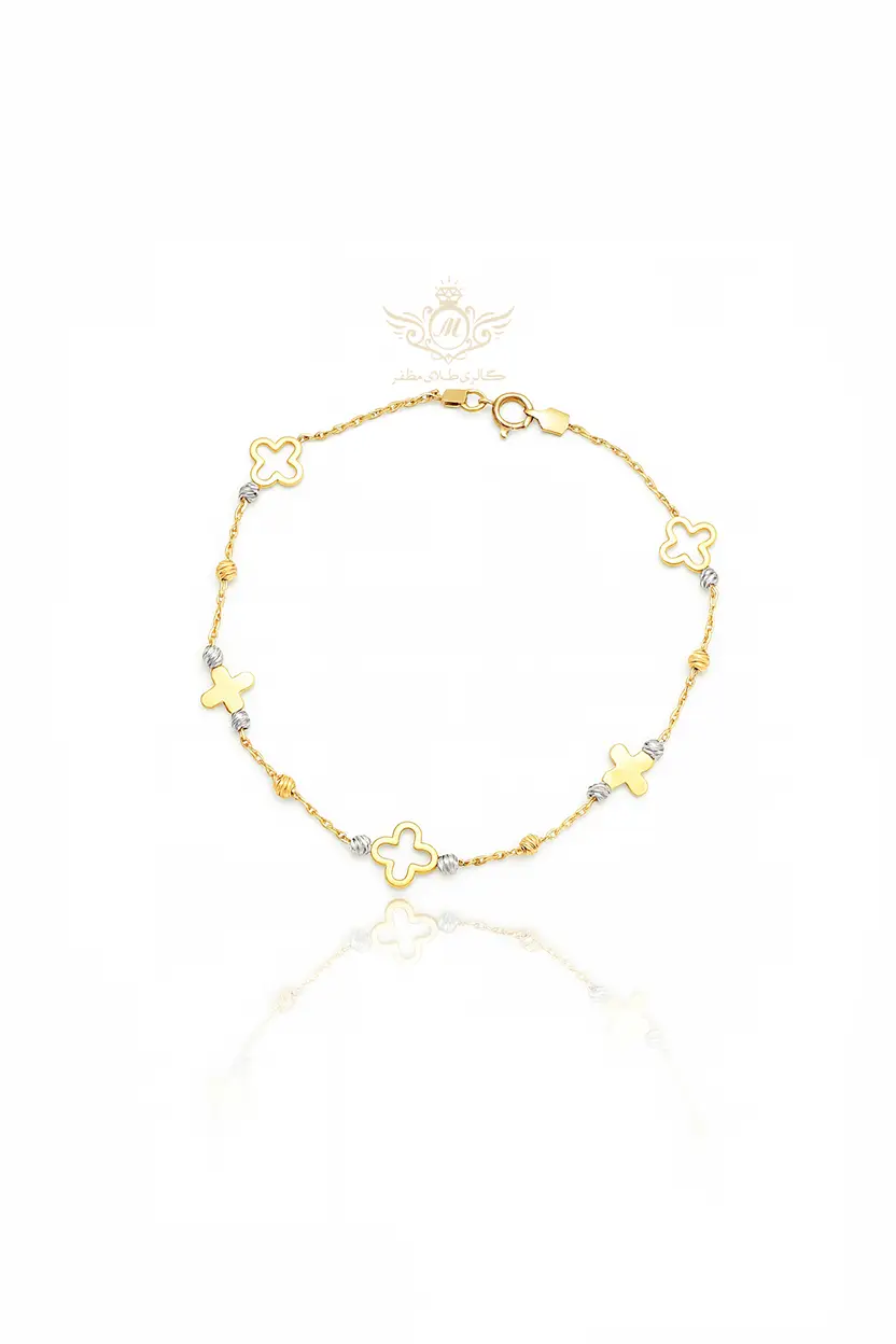 دستبند رنگ : سفید و طلایی وزن : 2.98 اجرت : 23%